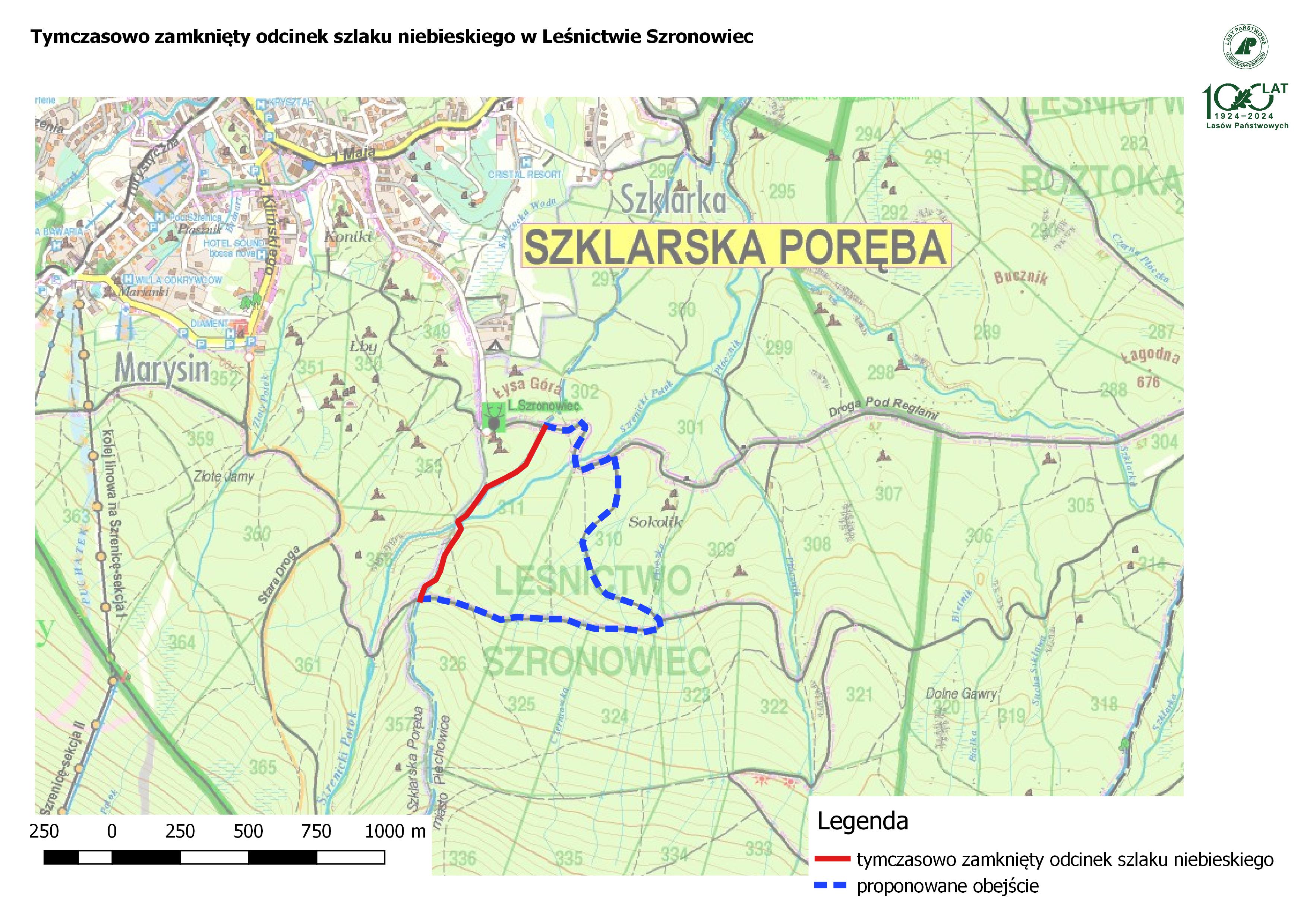 Informujemy, że odcinek szlaku niebieskiego pozostanie zamknięty do 13.11.2025 r.