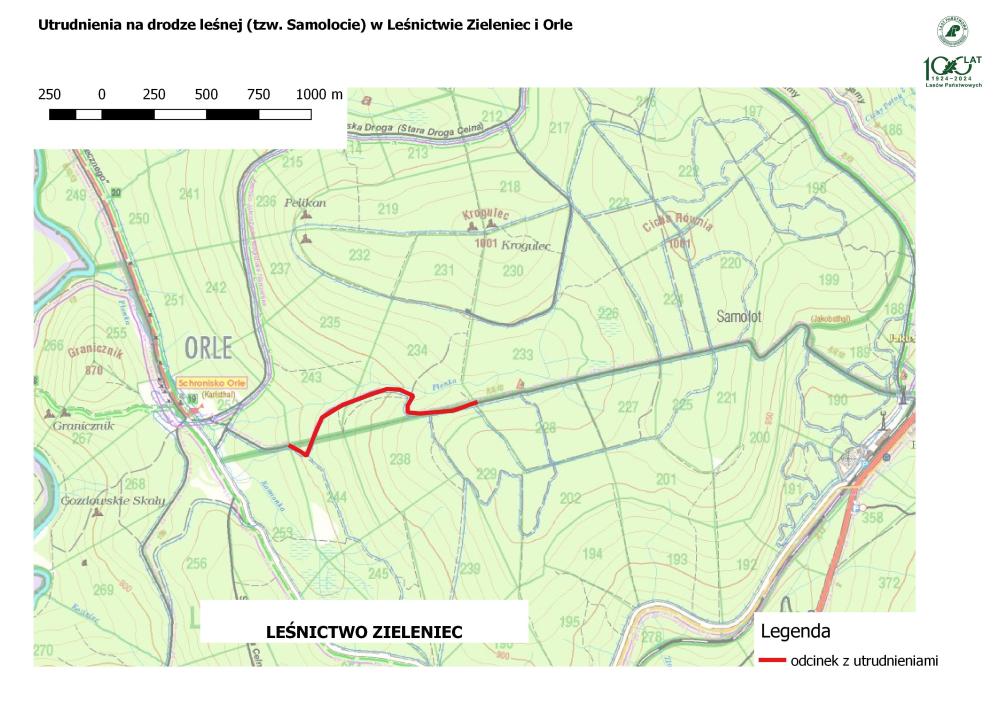 Informujemy, że od 23.09. do 31.10.2025 r. ze względu na prowadzenie prac gospodarczych w pobliżu drogi leśnej prowadzącej w Orla, w Leśnictwie Zieleniec i Orle mogą wystąpić utrudnienia w ruchu turystycznym.