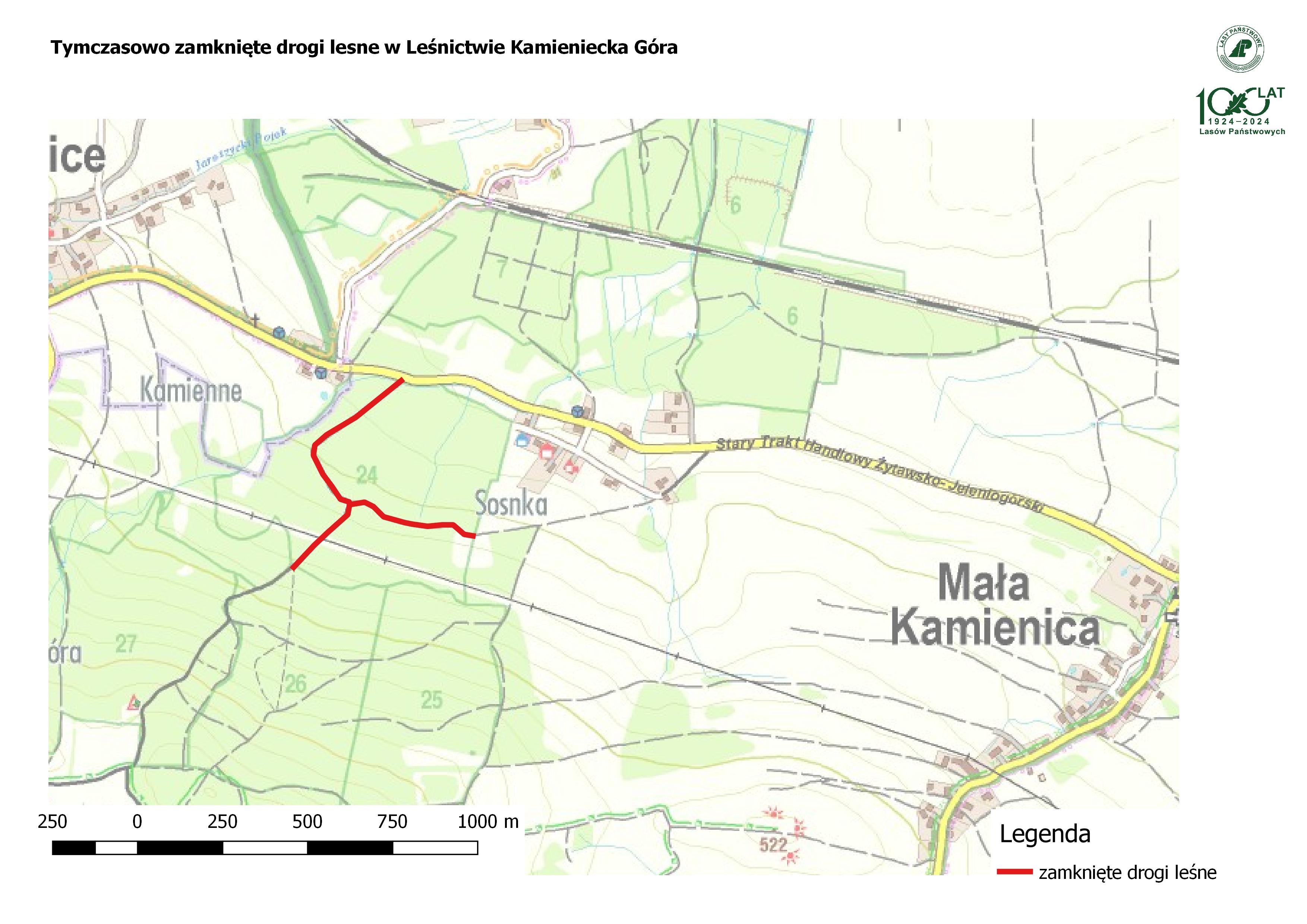 Informujemy, że od dnia 12.09.2025 r. do 31.10.2025 r., ze względu na prowadzenie prac gospodarczych tymczasowo zamknięte zostają drogi leśne w okolicach Małej Kamienicy w Leśnictwie Kamieniecka Góra.