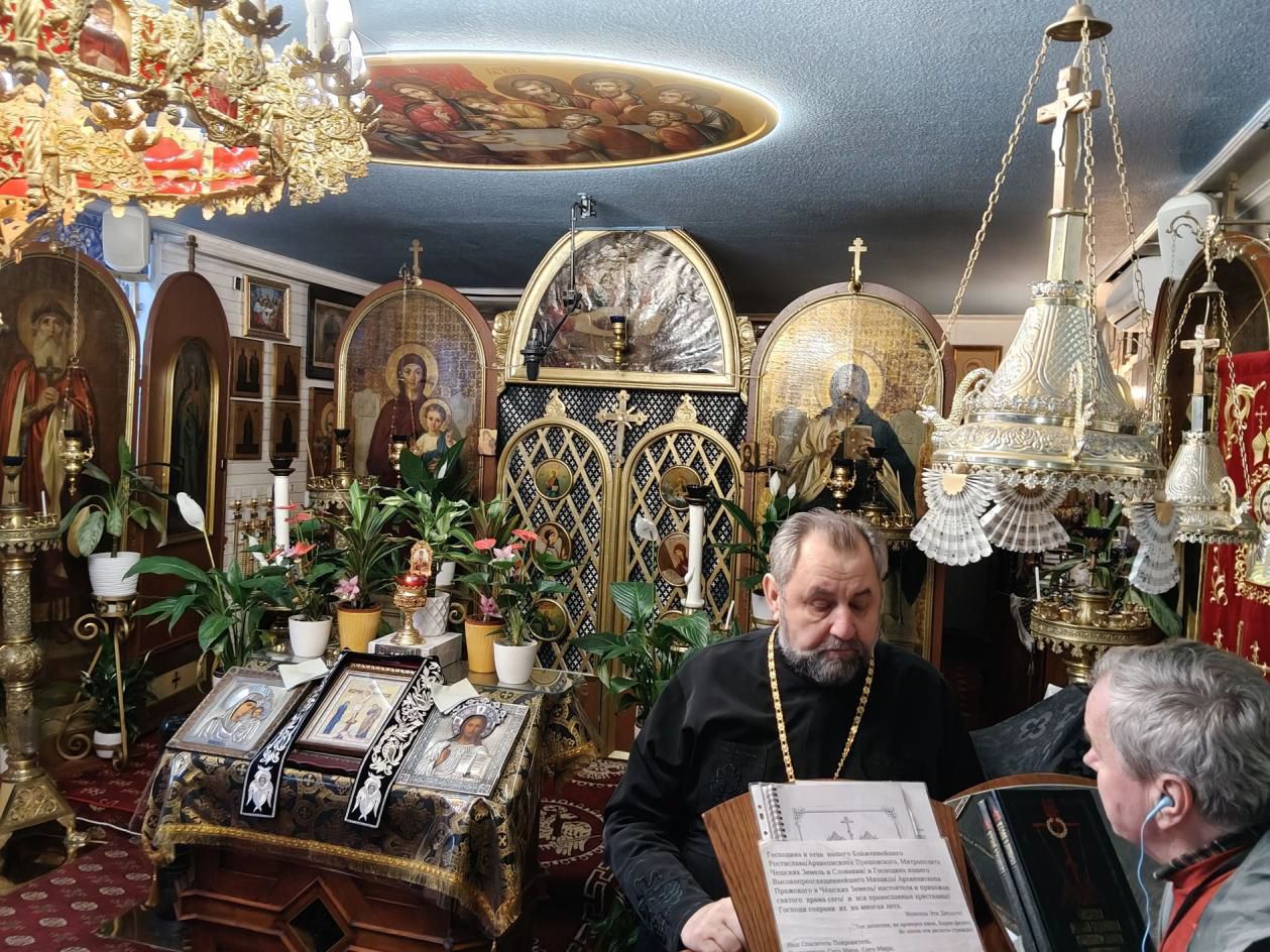 Podążając w stronę stacji kolejowej Praha – Dejvice przed którą znajduje się pomnik Tomáša Masaryka (pierwszego prezydenta Czech) autorstwa Břetislava Bendy weszliśmy na chwilkę do prawosławnego kościoła św. Mikołaja znajdującego się w piwnicy domu przy ulicy Roosveltova 29. Może ktoś się zdziwić bo przecież wszystkim znana jest katedra św. Mikołaja na Rynku Staromiejskim. To prawda. Historia naszego kościółka domowego bo tak go nazwano zaczyna się w roku 1948 kiedy to władze zakazały prowadzenia nabożeństw prawosławnych w katedrze. Wtedy to biskup praski Sergiusz pobłogosławił otwarcie kościoła domowego pod wezwaniem św. Mikołaja w piwnicy jednego z domów wybudowanych dla wykładowców uniwersyteckich. Dlatego mówi się, że ów kościółek znajduje się w „domu u profesora”.